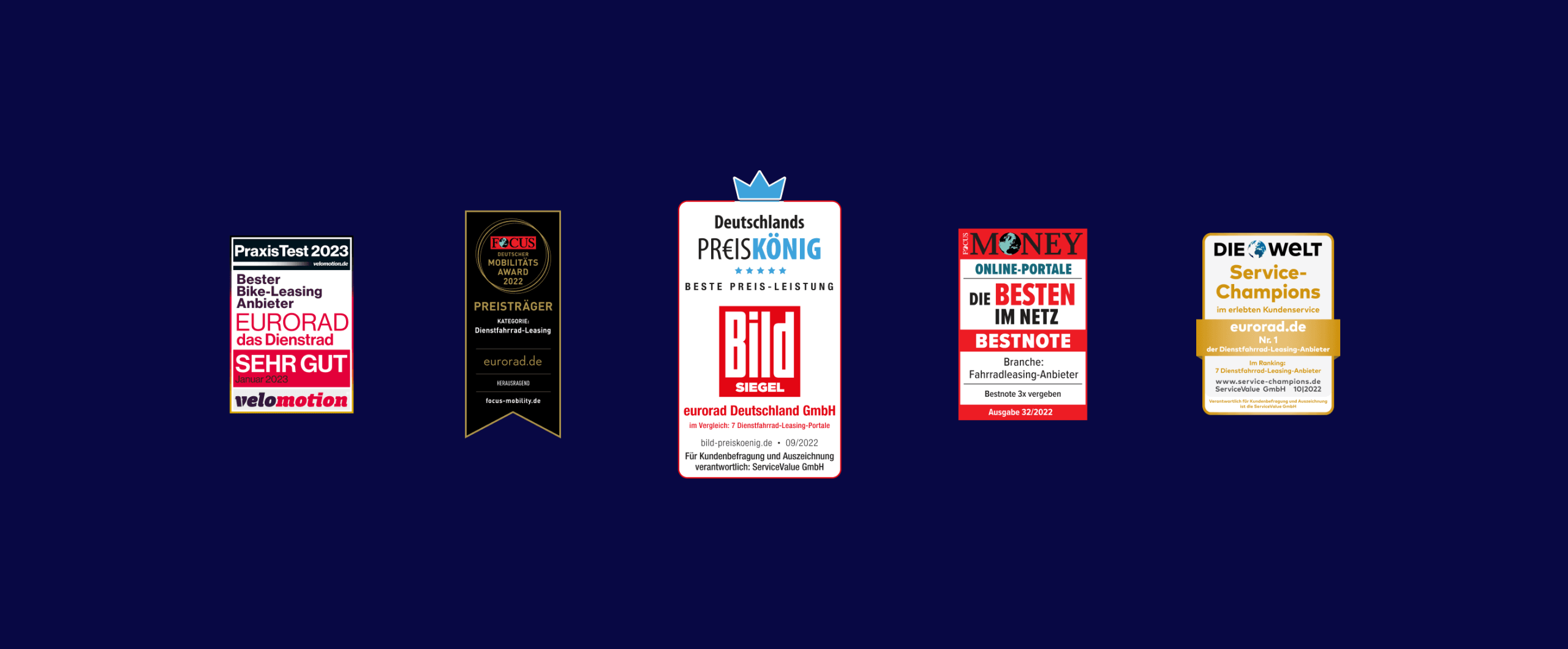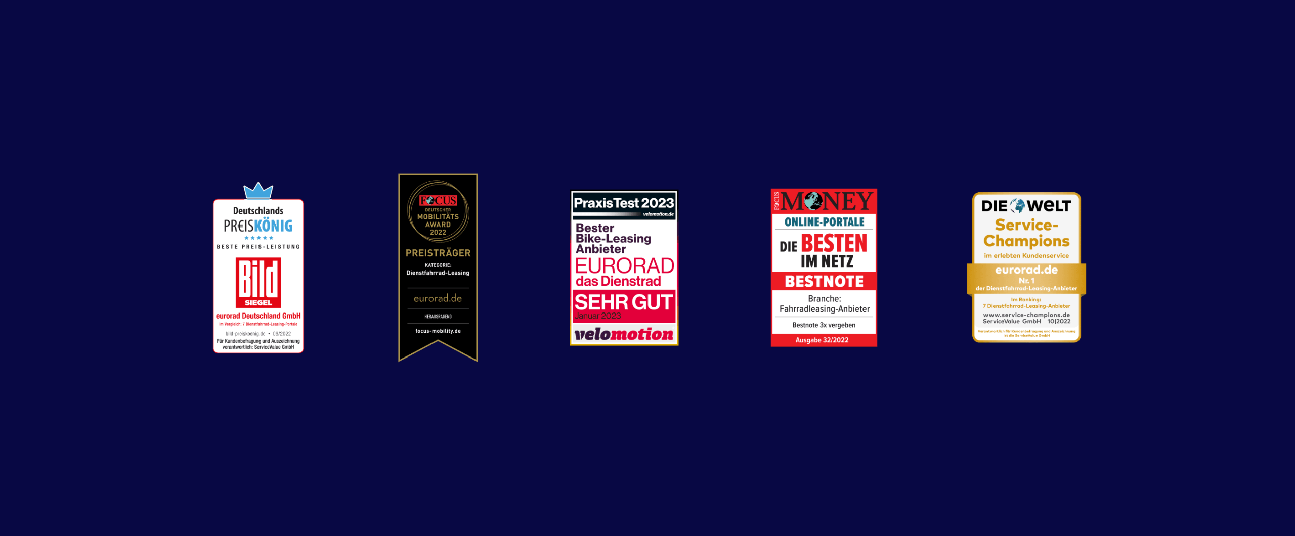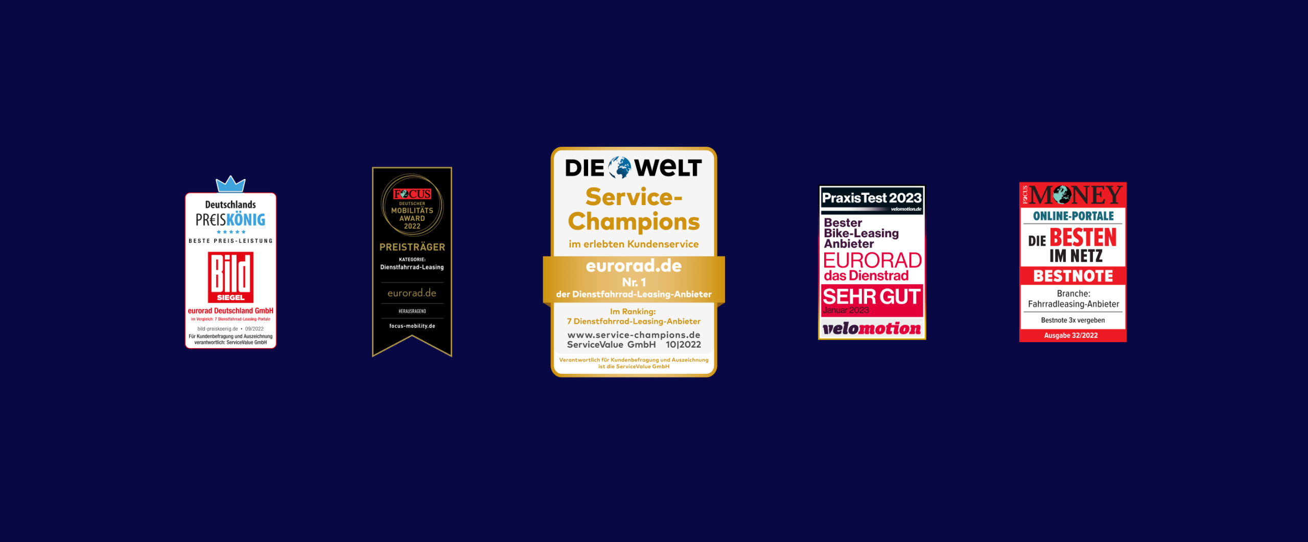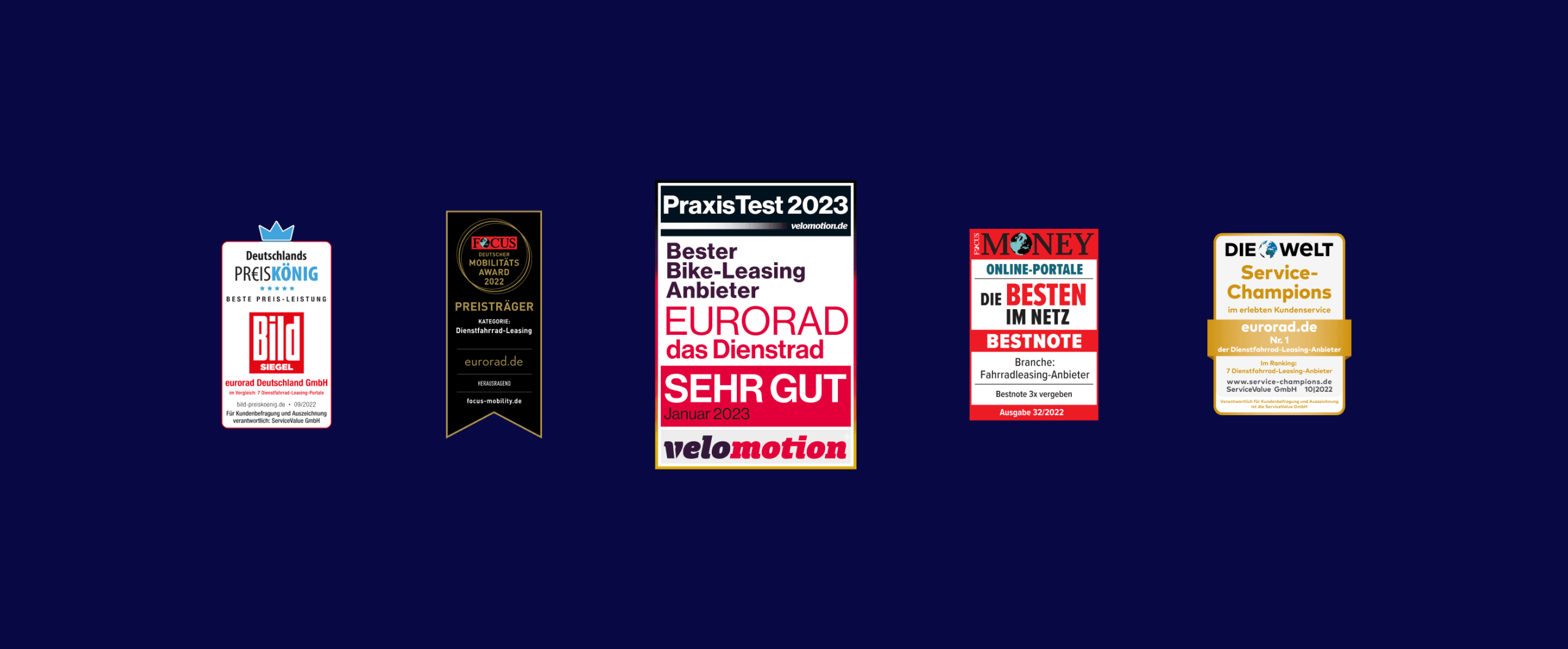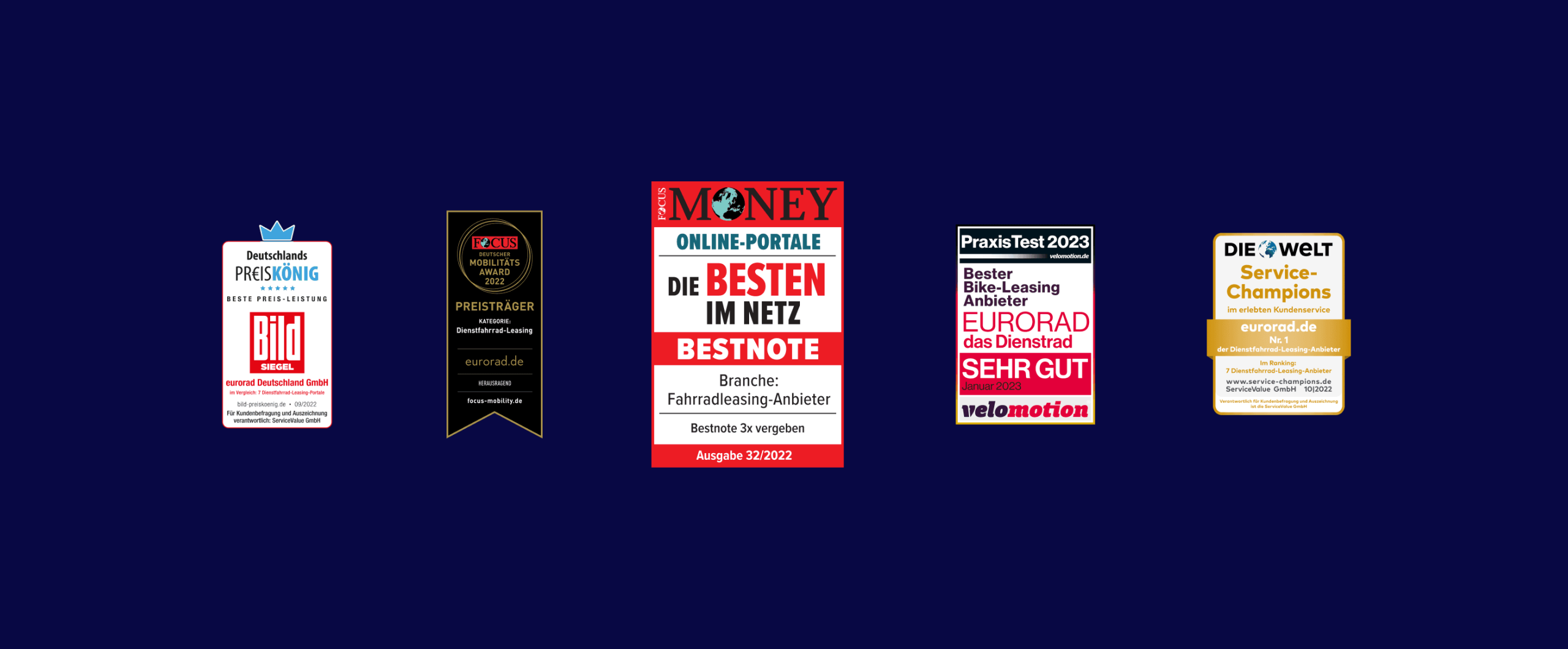 Auszeichnung für eurorad eurorad wurde von verschiedenen Testberichten als bester Bike-Leasing-Anbieter gekürt! Die Tageszeitung DIE WELT, das Magazin FOCUS MONEY mit dem Deutschland-Test und das Fahrrad-Magazin velomotion.de...